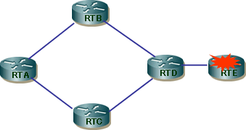 RTEへの経路(RTB→RTA→RTC→RTD)がRTDへ通知されたとします。