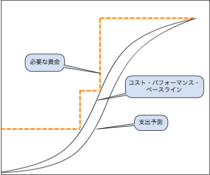 これは承認された、期間ごとの予算を集計して作成されるもので、通常は以下の図のようにSカーブの形で表示されます。